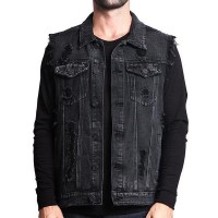 Sku:Mens Casual Distressed Ripped Denim Vest 85444127M