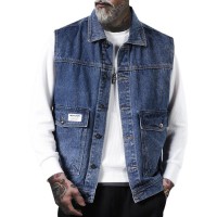 Sku:Mens Casual Loose Pocket Sleeveless Denim Vest 70511748Y