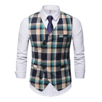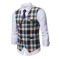 Sku:Mens Casual Plaid Single Breasted Suit Vest 98330524Y