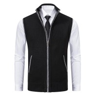 Mens Casual Solid Color Stand Collar Sleeveless Knitted Vest 19972434Y