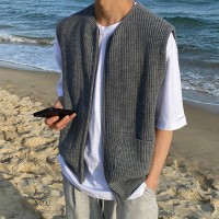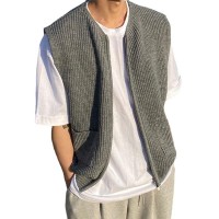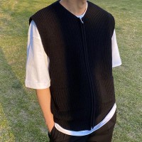Sku:Mens Casual Solid Color Zipper Knit Sleeveless Vest 92594242Y