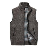 Mens Casual Stand Collar Fleece Knitted Vest 30062238M