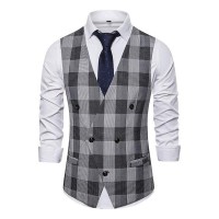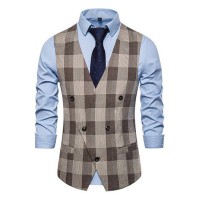 Mens Casual V-Neck Plaid Suit Vest 97343336M
