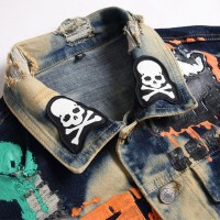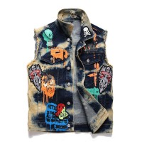 Mens Casual Washed Embroidery Print Lapel Collar Loose Denim Vest 39872810M