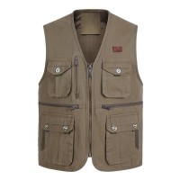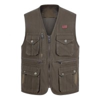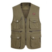 Mens Cotton Outdoor Multi-pocket Casual Vest 32497248M