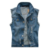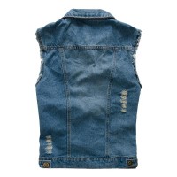 Mens Denim Ripped Vest with Lapel Collar 02939770X