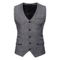 MENS HERRINGBONE SINGLE BREASTED VEST 95347858M