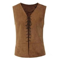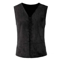 Sku:Mens Retro Casual Lace-Up Solid Color Vest 81619774X