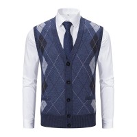 Sku:Mens Retro Rhombus Lattice Single Breasted Knit Vest 82510289Z