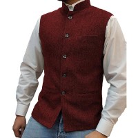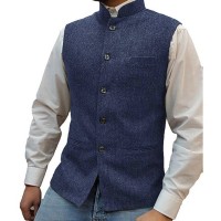 Mens Stand Collar Herringbone Single Breasted Vest 76418897M