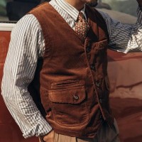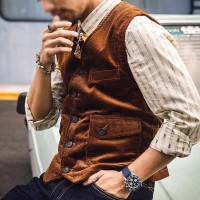 Sku:Mens Vintage Corduroy Multi-Pocket Vest 25664460Y