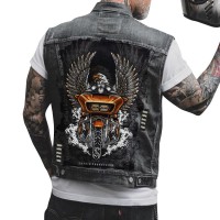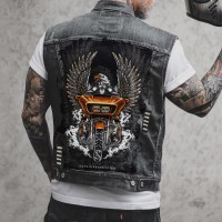 Sku:Mens Vintage Eagle Print Biker Denim Vest 67469804Y