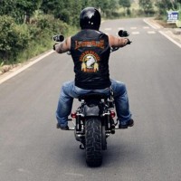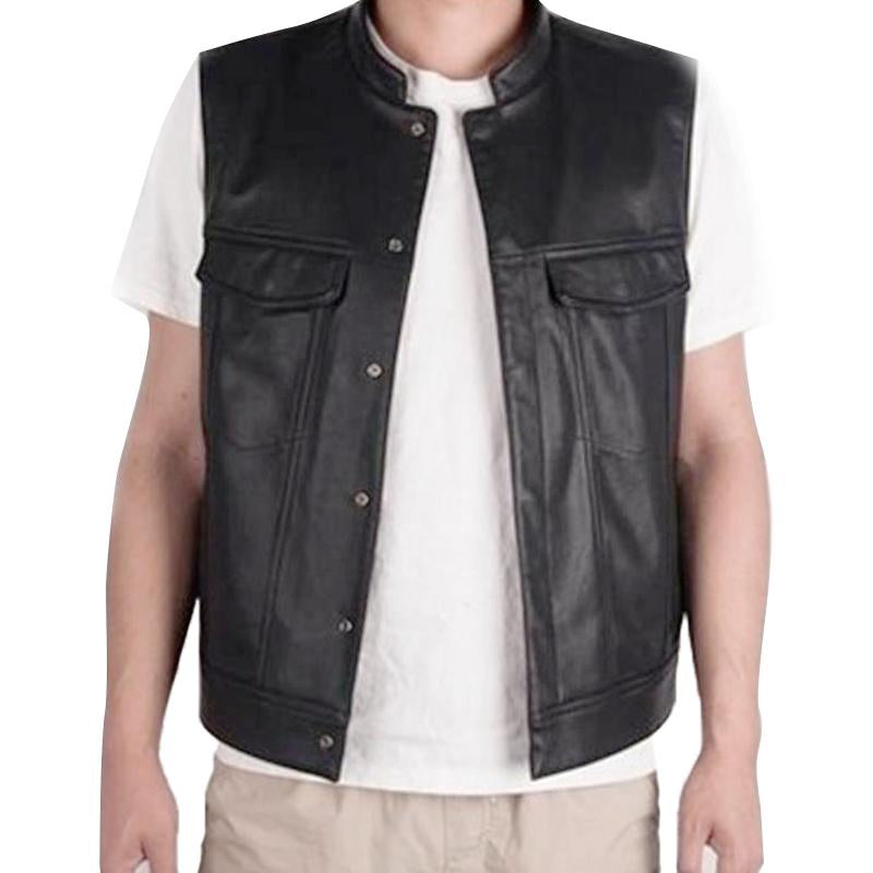 Sku:Mens Vintage Embroidered Cloth Patch Biker Leather Vest 9654209