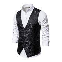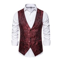 Mens Vintage Jacquard V-Neck Single Breasted Vest 82816436M