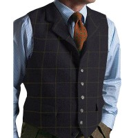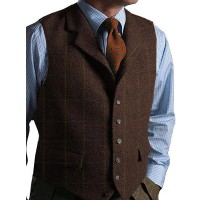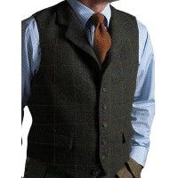 Mens Vintage Plaid Lapel Single Breasted Slim Vest 09816788M