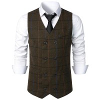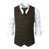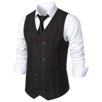 Sku:Mens Vintage Plaid V Neck Double Breasted Suit Vest 70463888Z