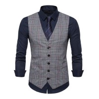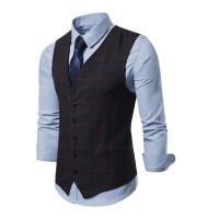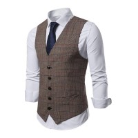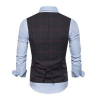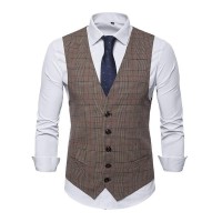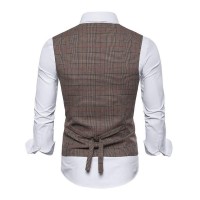 Mens Vintage Single Breasted V Neck Plaid Suit Vest 13549331M