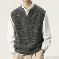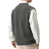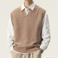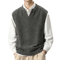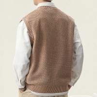 Sku:Mens Vintage Solid Color V-Neck Loose Pullover Knit Vest 099928