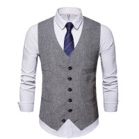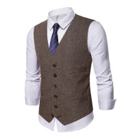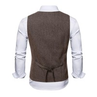 Mens Vintage Solid Color V-Neck Single-Breasted Slim Fit Vest 00171886M