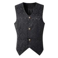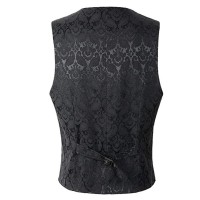 Sku:Mens Vintage Solid Jacquard Collarless Vest 38777713Y