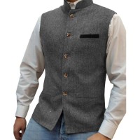 Mens Vintage Stand Collar Contrast Color Single Breasted Suit Vest 59649792M