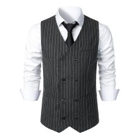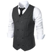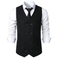Sku:Mens Vintage Striped V Neck Double Breasted Suit Vest 95030731Z