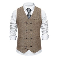 Mens Vintage V Neck Double Breasted Suit Vest (Shirt and Tie Excluded) 56863850M