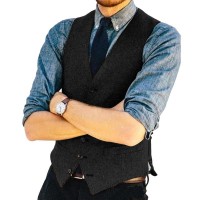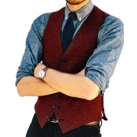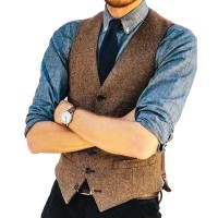 Mens Vintage V Neck Herringbone Single Breasted Suit Vest 21328439M