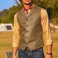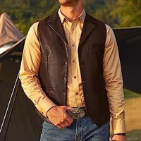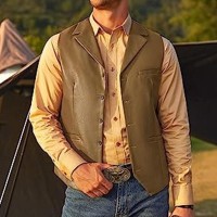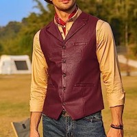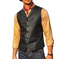 Mens Vintage V Neck Slim Single Breasted Leather Vest 90958464M