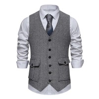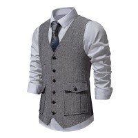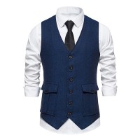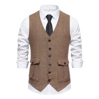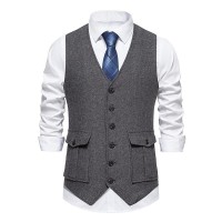 Mens Vintage V-Neck Single Breasted Patch Pocket Suit Vest (Shirt and Tie Excluded) 02085676M