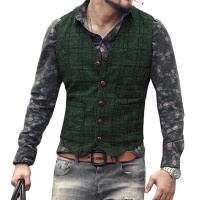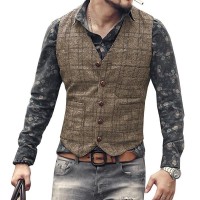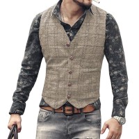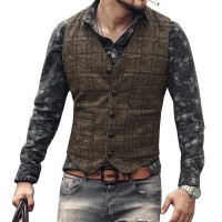 Sku:Mens Vintage V-Neck Single-Breasted Plaid Slim Fit Suit Vest 43
