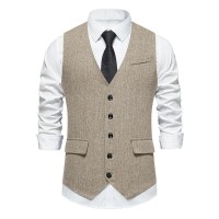 Mens Vintage V-Neck Single-Breasted Suit Vest (Shirt and Tie Excluded) 83234646M