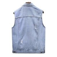 Mens Vintage Washed Ripped Lapel Lapel Single Breasted Denim Vest 74878409M