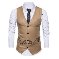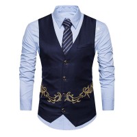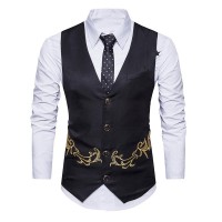 Sku:Mens V-neck Embroidered Single-breasted Vest 29357537X
