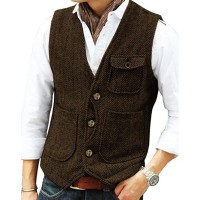 Mens V-neck Single-breasted Tweed Vest 39854419M